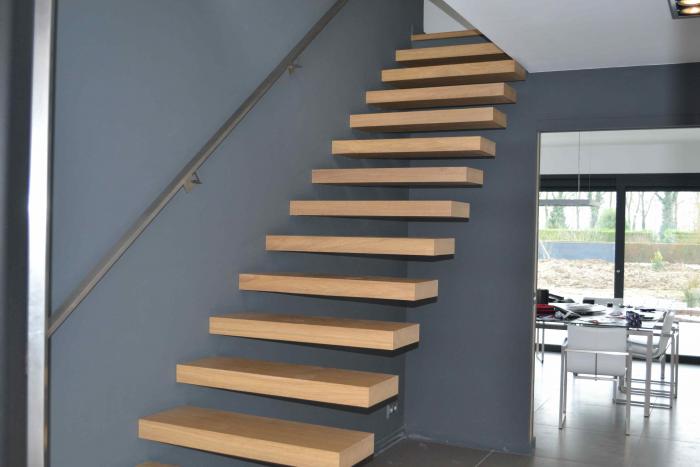 Escalier Design alliant le bois et l'inox.